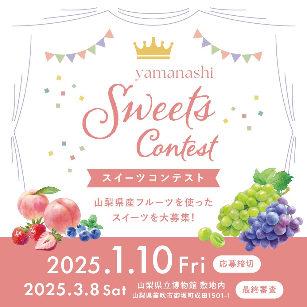 山梨県(知事:長崎幸太郎)は、県産果実スイーツに対する気運醸成及びパティシエ等の自己研鑽の成果を試す場として「やまなしスイーツコンテスト2024」を開催します。