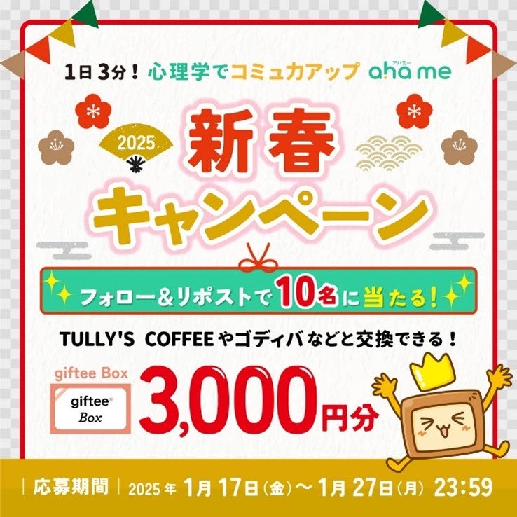 株式会社日本能率協会マネジメントセンター(代表取締役社長:張 士洛、東京都中央区、以下JMAM[ジェイマム])が運営するWebサービス「ahame(アハミー)」は、2025年1月17日(金)から1月27(月)まで「1日3分! 心理学でコミュ力アップ『ahame』新春キャンペーン」をXの公式アカウント(@konecchi_ahame)にて実施中です。