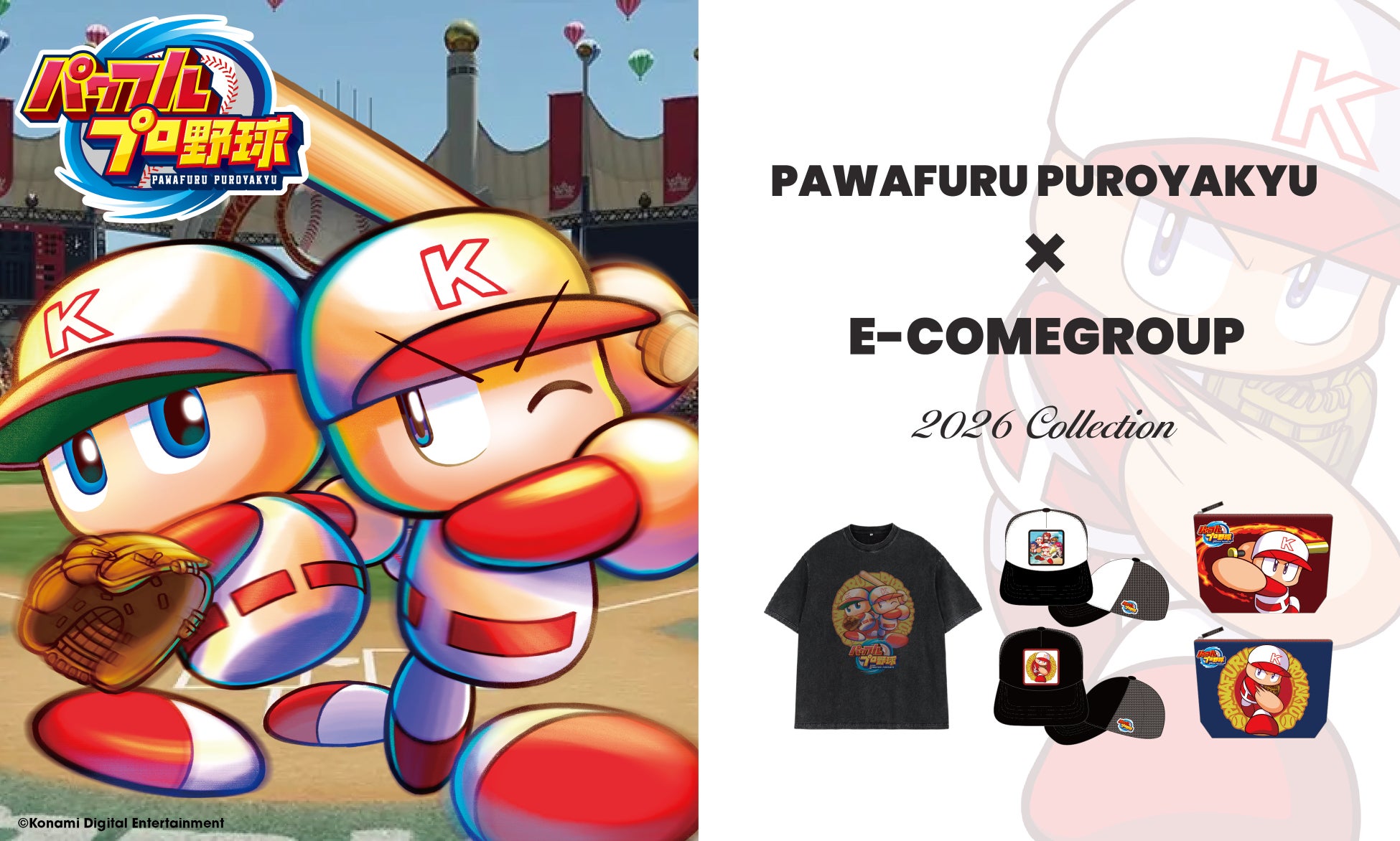 E-COMEGROUPより、30年以上の歴史を持つ国民的人気野球ゲーム「パワフルプロ野球」シリーズの「さがらポーチ」や「Tシャツ」等の新作コレクションが登場!