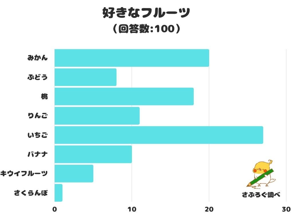 2位以降は、「みかん」、「桃」と続き、「さくらんぼ」は8位という結果になりました。