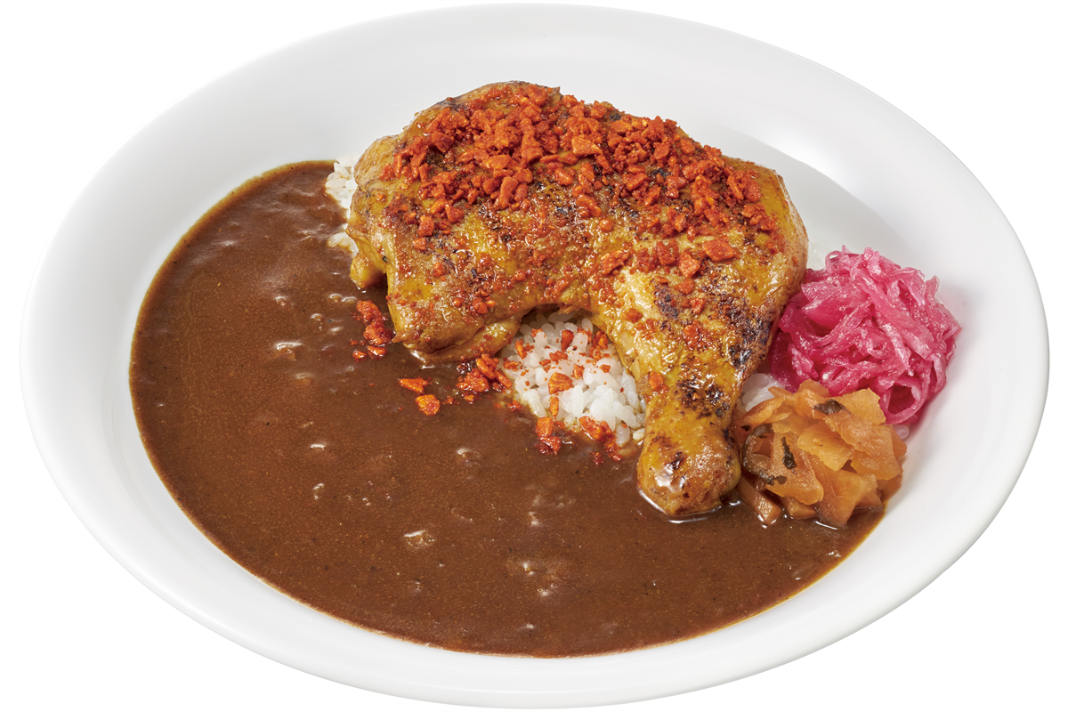 また、炭火チキンの香ばしさを引き立てるてりやきソースとおんたまをトッピングした「てりたま炭火チキンカレー」、唐辛子の辛さとガーリックの旨みがやみつきになる特製フレークをかけた「ファイヤー炭火チキンカレー」も販売します。