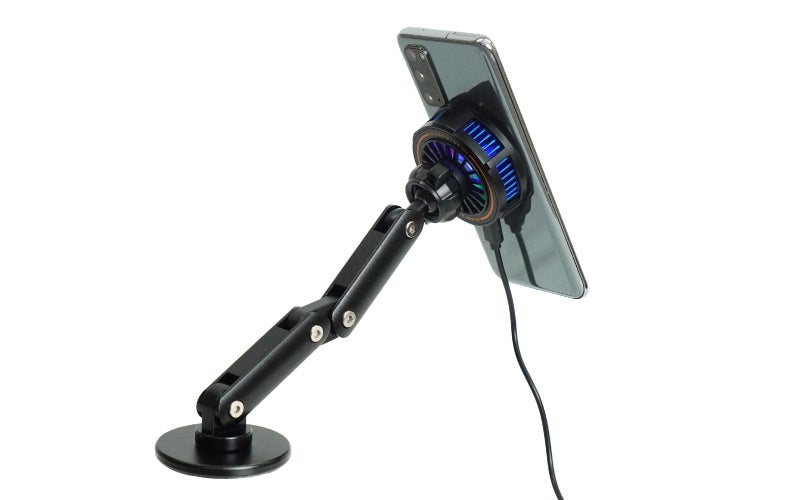 本製品は、スマートフォンの熱暴走を防ぎながら、しっかりと固定できる車載用の冷却スマホホルダーです。