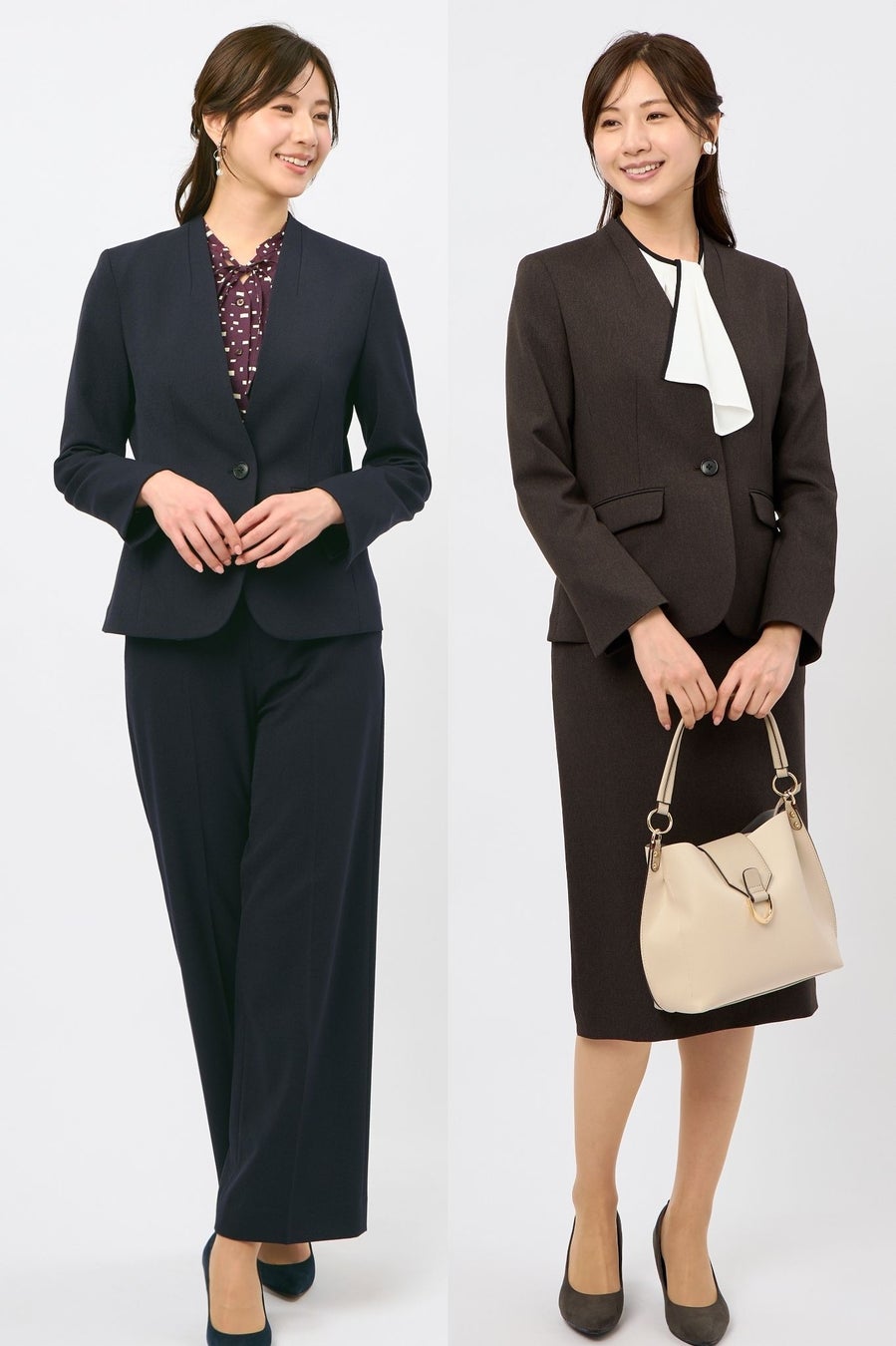 ①1つボタンVカラージャケット(21JV5523-C / 21JV5524-D)②ワイドパンツ(21PW5523-C / 21PW5524-D)③ロングタイトスカート(21ST5523-C / 21ST5524-D)