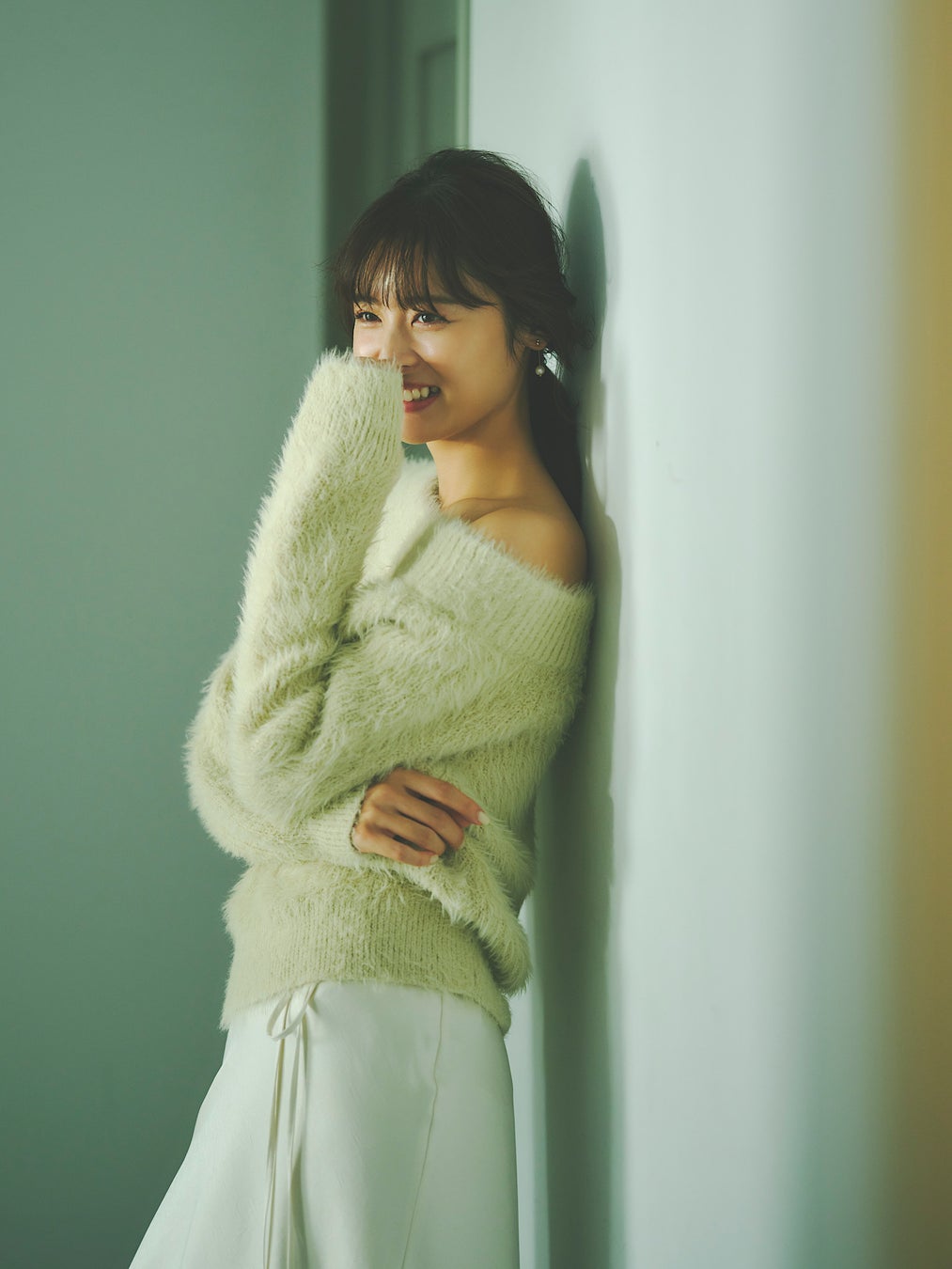 3.ときめく心に寄り添うのはヘアリーなオフショルニット