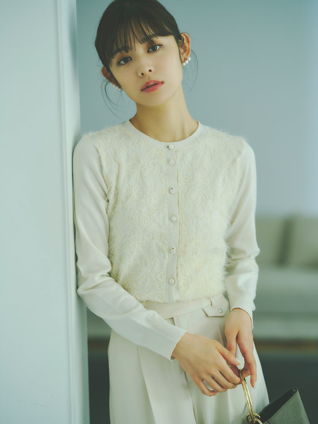 6.繊細な刺繍カーディガンで“冬の白”をよそいきに