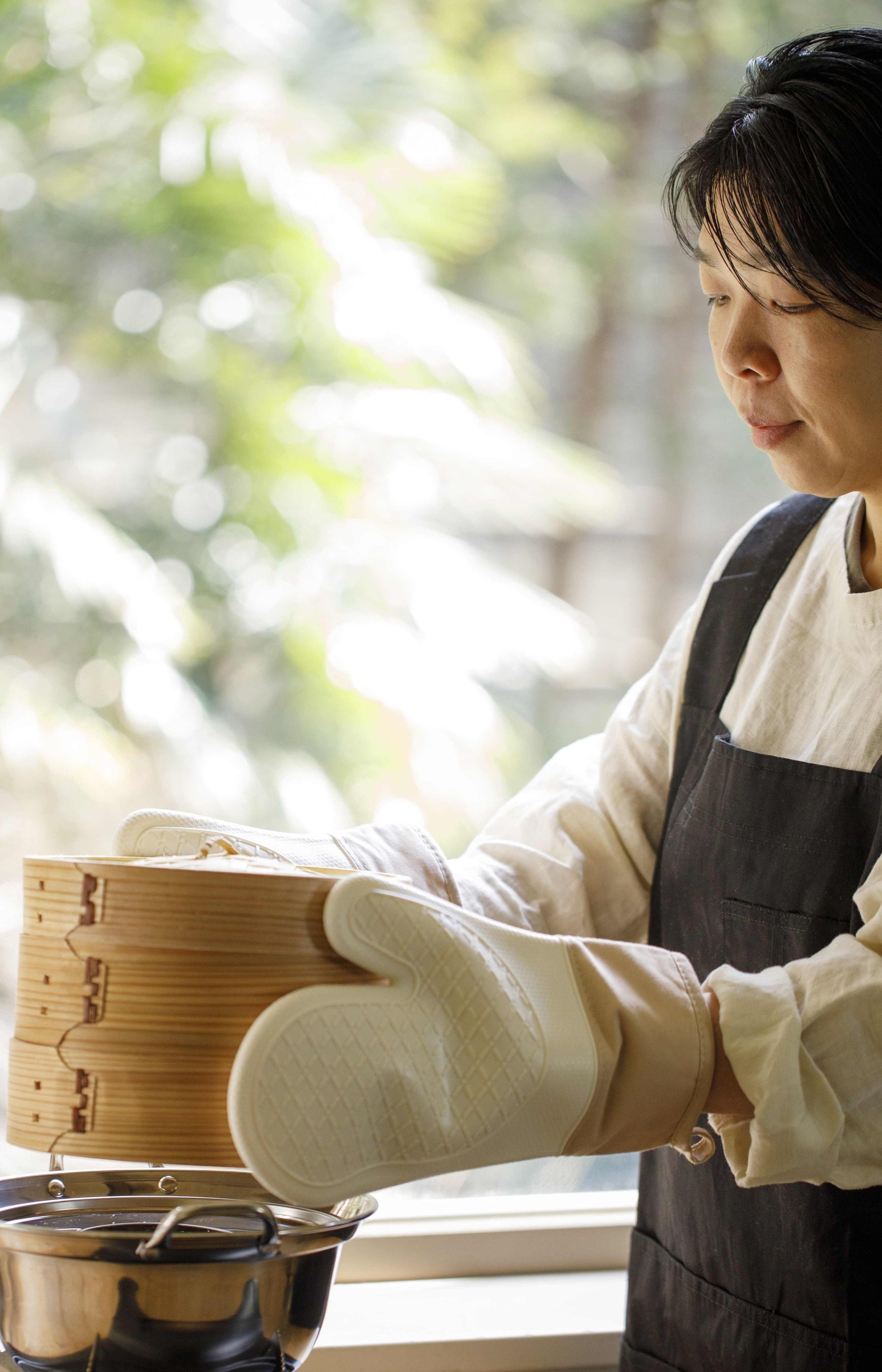 現在は長男、長女が巣立ち、家族5人暮らし。レンジも炊飯器もない家で、毎日せいろ蒸し暮らしを満喫している。