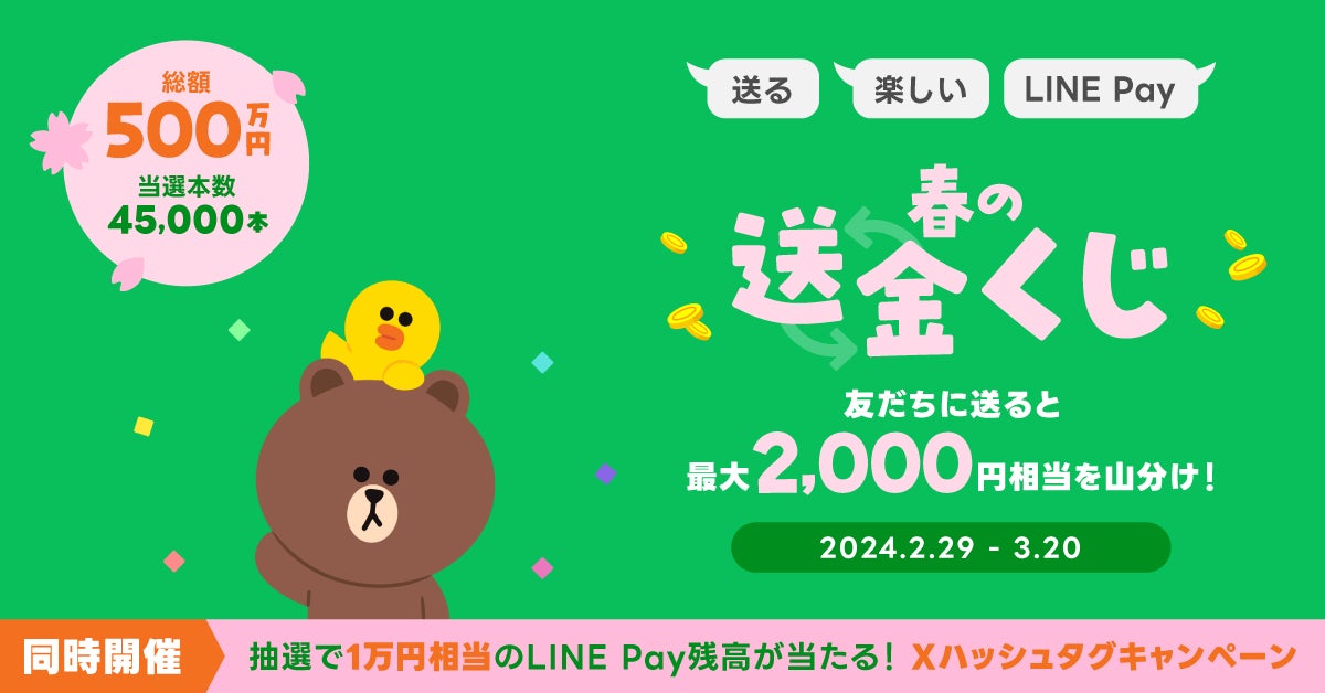 ・「春の送金くじ」の詳細は、こちら( https://linepay.line.me/promotion/transfer-kuji-202402.html )をご覧ください。