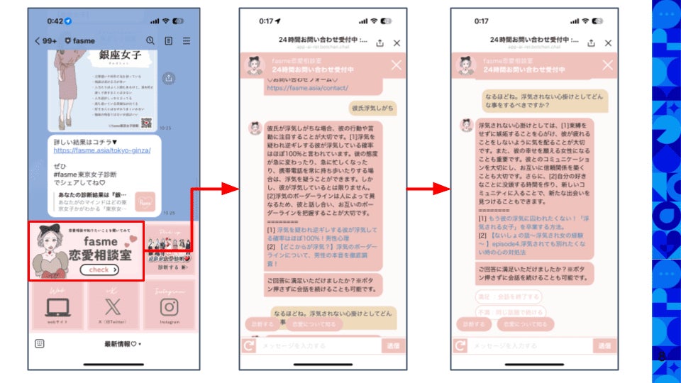 女性向けメディア「fasme」、ChatGPT搭載AIチャットボットによる「恋愛相談室」をLINE公式アカウントで開始