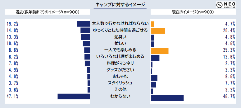 ■サウナは「おじさんのもの」から「若者に人気」。キャンプは「大人数」から「一人でも楽しめる」。休息系趣味・娯楽のイメージが変化