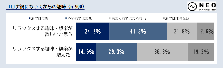 生活者起点のリサーチ&マーケティング支援を行なう株式会社ネオマーケティング(所在地:東京都渋谷区)2022年12月2日(金)~2022年12月5日(月)の4日間、全国の20代~40代の男女を対象に休息系趣味・娯楽に調査をテーマにインターネットリサーチを実施いたしました。