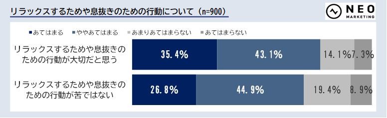 ■リラックス・息抜きのための行動が大切だと思うと計78.6%が回答。約4割が「チル」、「ととのう」ために行動した経験あり