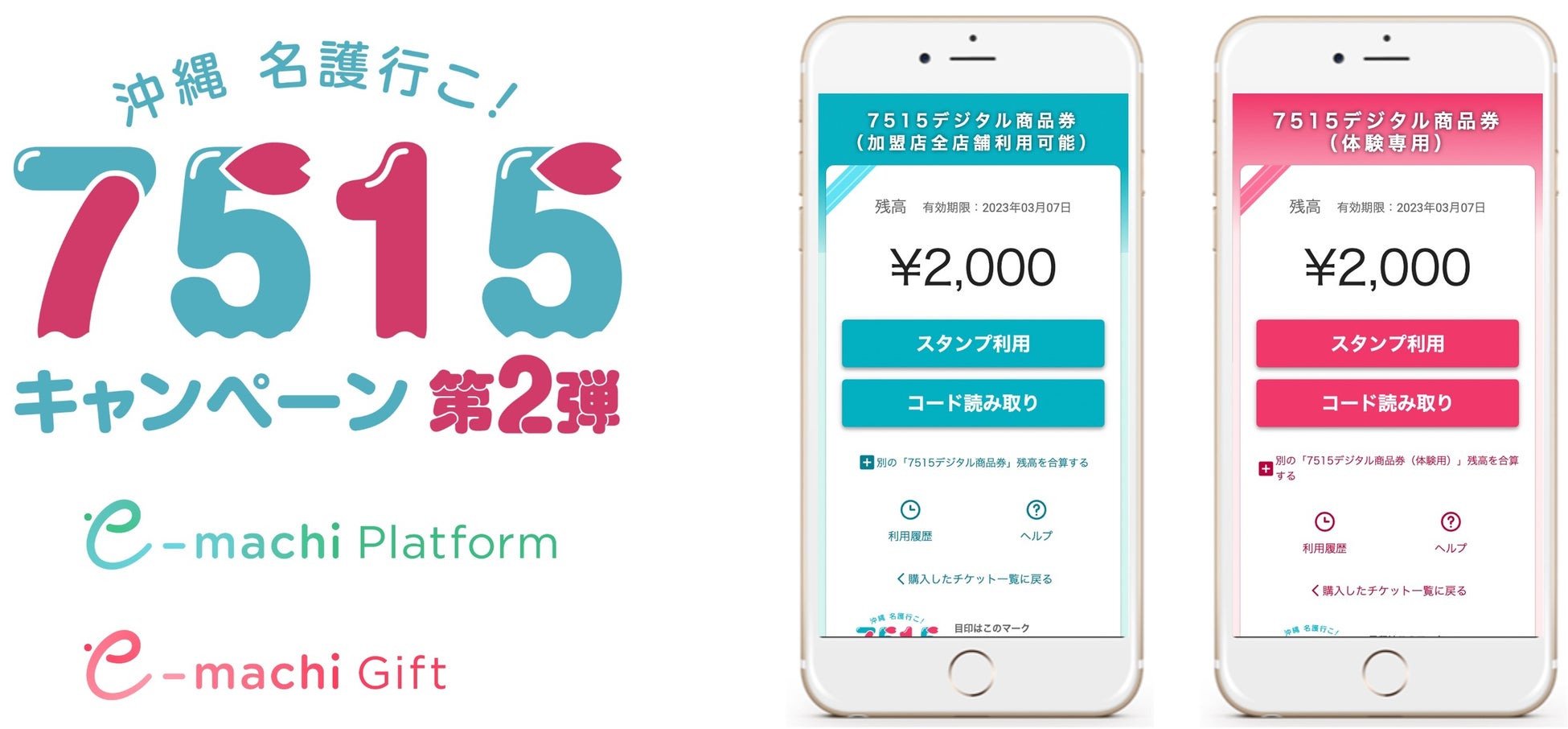 eギフトプラットフォーム事業(※1)を展開する株式会社ギフティ(本社:東京都品川区/代表取締役:太田 睦、鈴木 達哉/以下、ギフティ)は、新型コロナウイルス感染症の影響を受けた沖縄県名護市内事業者の支援を目的に名護市が実施する「名護市内宿泊者向けデジタルプレミアム商品券事業」に、自治体・地域の課題を解決するデジタルプラットフォーム「e街プラットフォーム®」(※2)を採用いただきました。これに伴い、市内の宿泊施設へ対象期間中に「7515(ナゴイコ)キャンペーン第2弾」対象の宿泊プランで宿泊された方を対象に、デジタルプレミアム商品券「7515デジタル商品券」の販売を開始しております。なお、「7515デジタル商品券」の購入が可能な宿泊プランの販売が一時中止されておりましたが、ご好評につき、2023年1月6日(金)より再販売を開始しておりますので、あわせてお知らせいたします。本事業は、株式会社JTB沖縄とギフティの連携のもと、株式会社J&Jギフト(本社:東京都豊島区/代表取締役社長:梶谷 直樹)と共同で行っております。