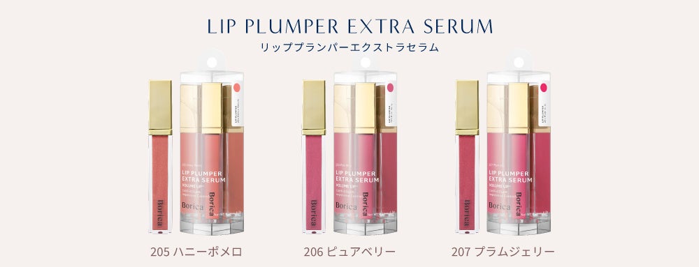 【Borica】No.1 ロングセラー商品“リッププランパーエクストラセラム”から「ぷるんと水艶粘膜カラー」春の限定色 3 色が 4 月 2 日(水)発売。