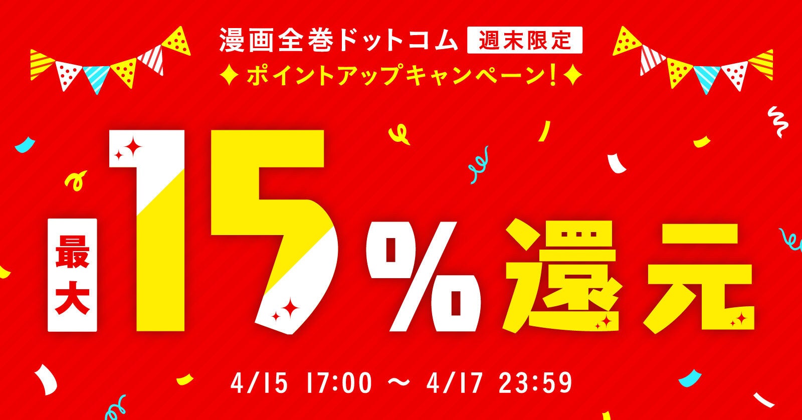 【漫画全巻ドットコム】週末限定!最大15%ポイントアップキャンペーン開催中!