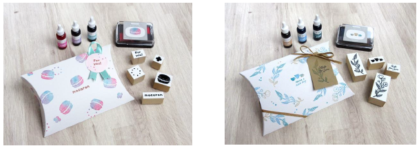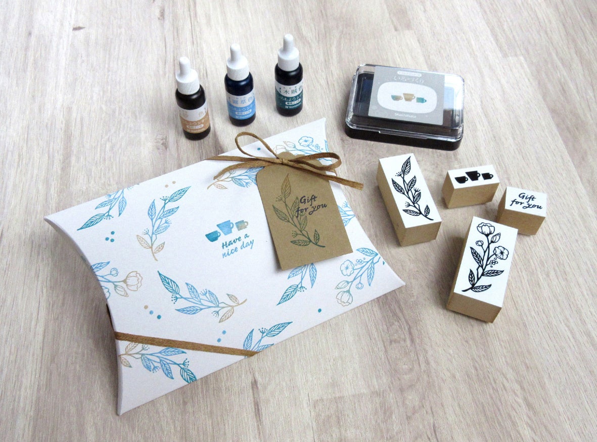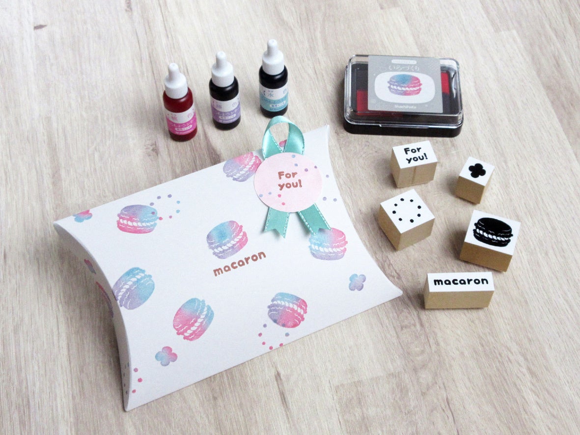 STEP2:ご自身で作った「いろづくり」と、お好きなゴム印を使いピローボックに押す
