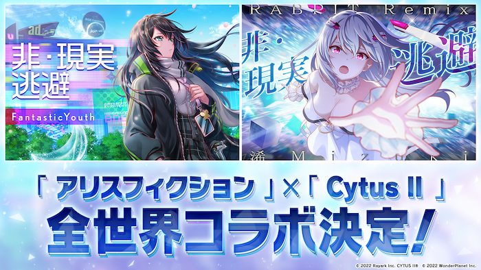 8月10日(予定)からRayark社の超人気音楽ゲーム「Cytus II」内で『アリスフィクション』のテーマソングFantasticYouth「非・現実逃避」が無料でプレイできます。
