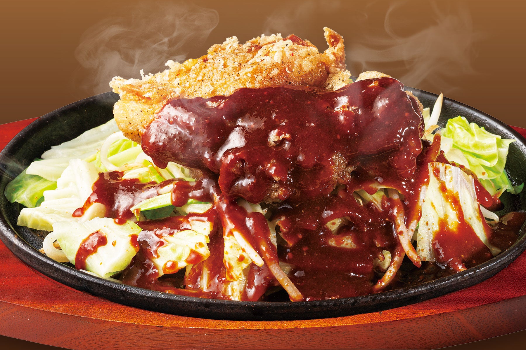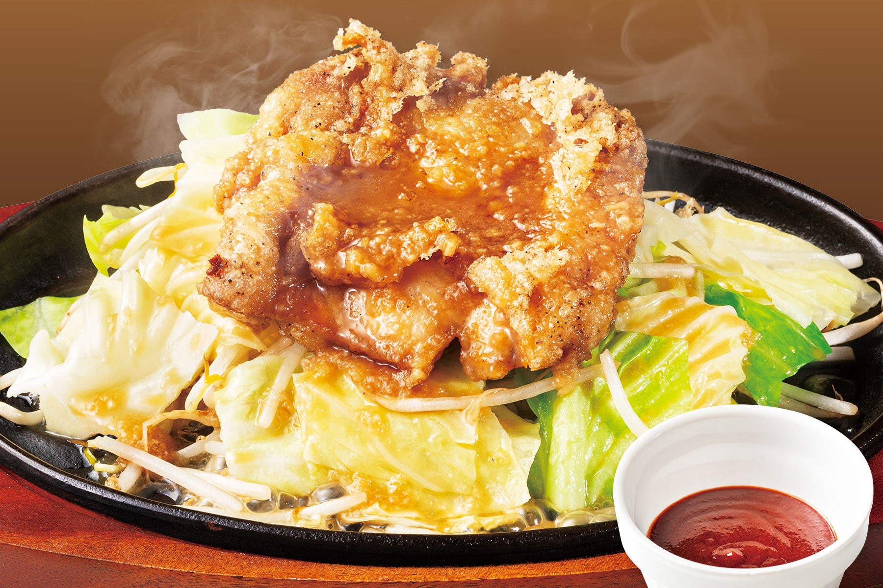 ごはんとの相性抜群!鉄板から立ち昇るしょうがの香りが食欲をかきたてます。揚げたてチキンの肉汁と、テリヤキソースの甘辛さは間違いなしの組み合わせ。一口食べるだけでチキンのジューシーさとソースの甘辛さが口に広がり“ごはん必須”となる美味しさです。