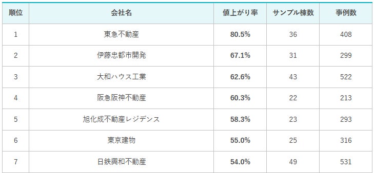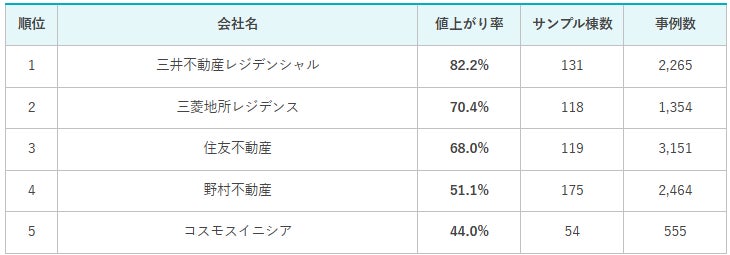 売主別中古マンション値上がり率ランキング(関東版)【2025年公表】