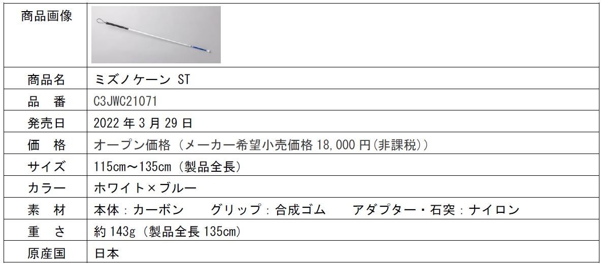軽量性と操作性を追求カーボン製白杖「ミズノケーン ST」発売