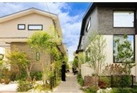 三方を道路に囲まれた全15棟の分譲住宅です。地役権を設定 した共用の敷地に、通行路である小路(フットパス)ではなく、「滞 在する行為」を促す小路「ステイパス」(Stay:滞在する、Path:小 路)を計画しました。建物内と外を緩やかにつなぐことで、住民同 士の持続可能なコミュニティ形成、緑の街並み景観、歩車分離に よる安全安心を実現し、心地よい住環境を創出しています。