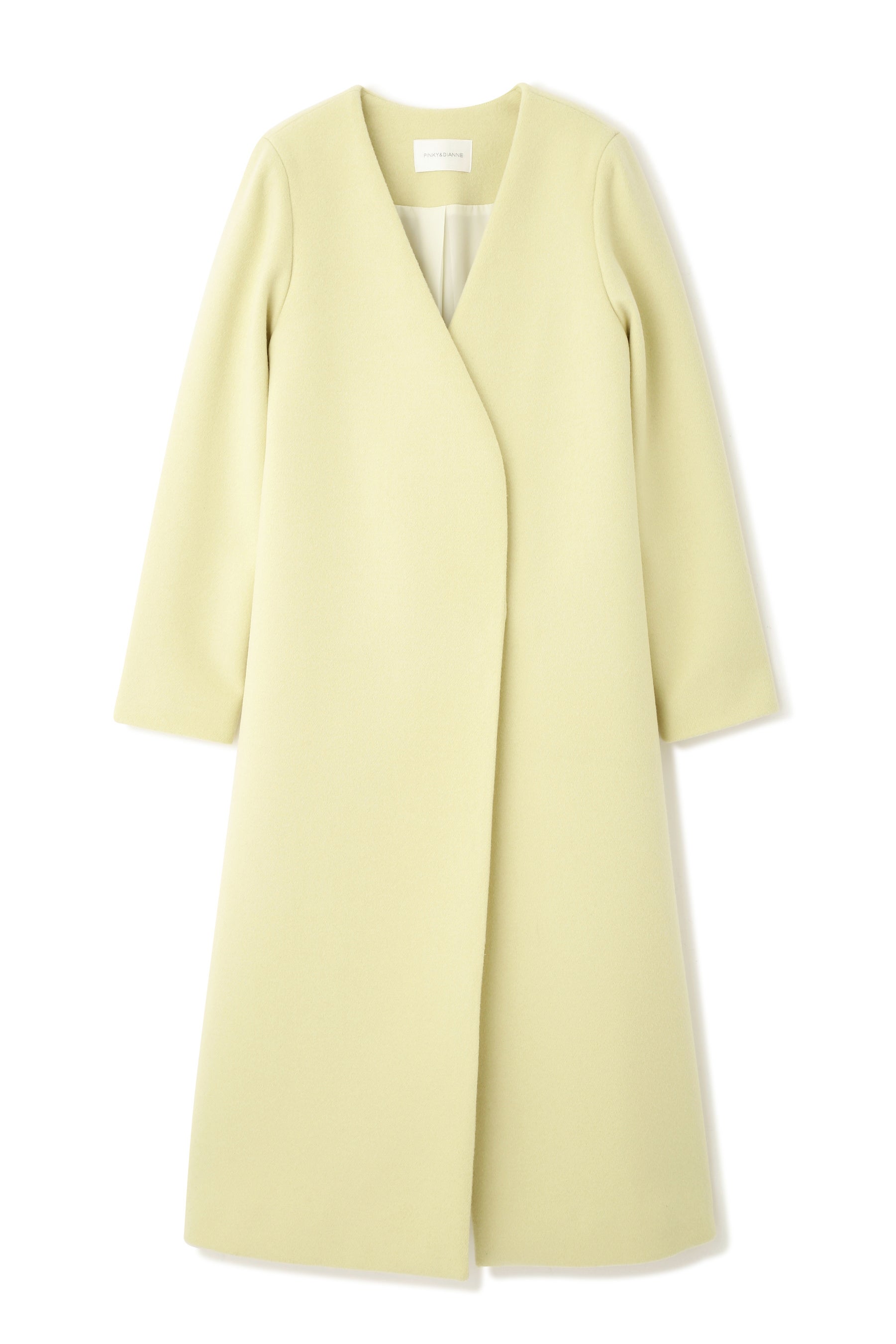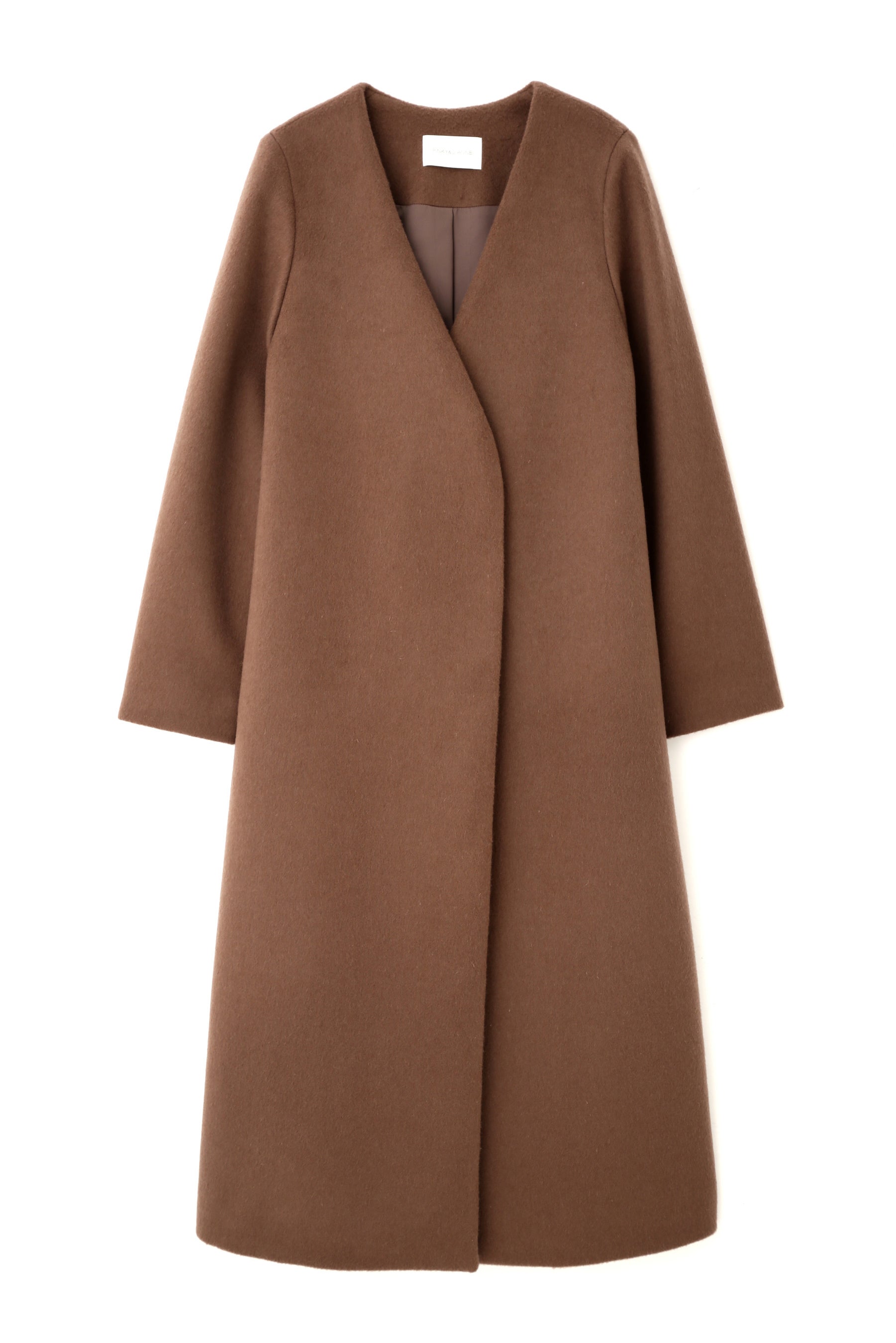 肩から裾に向かって少し広がるすっきりとしたシルエットのコート。