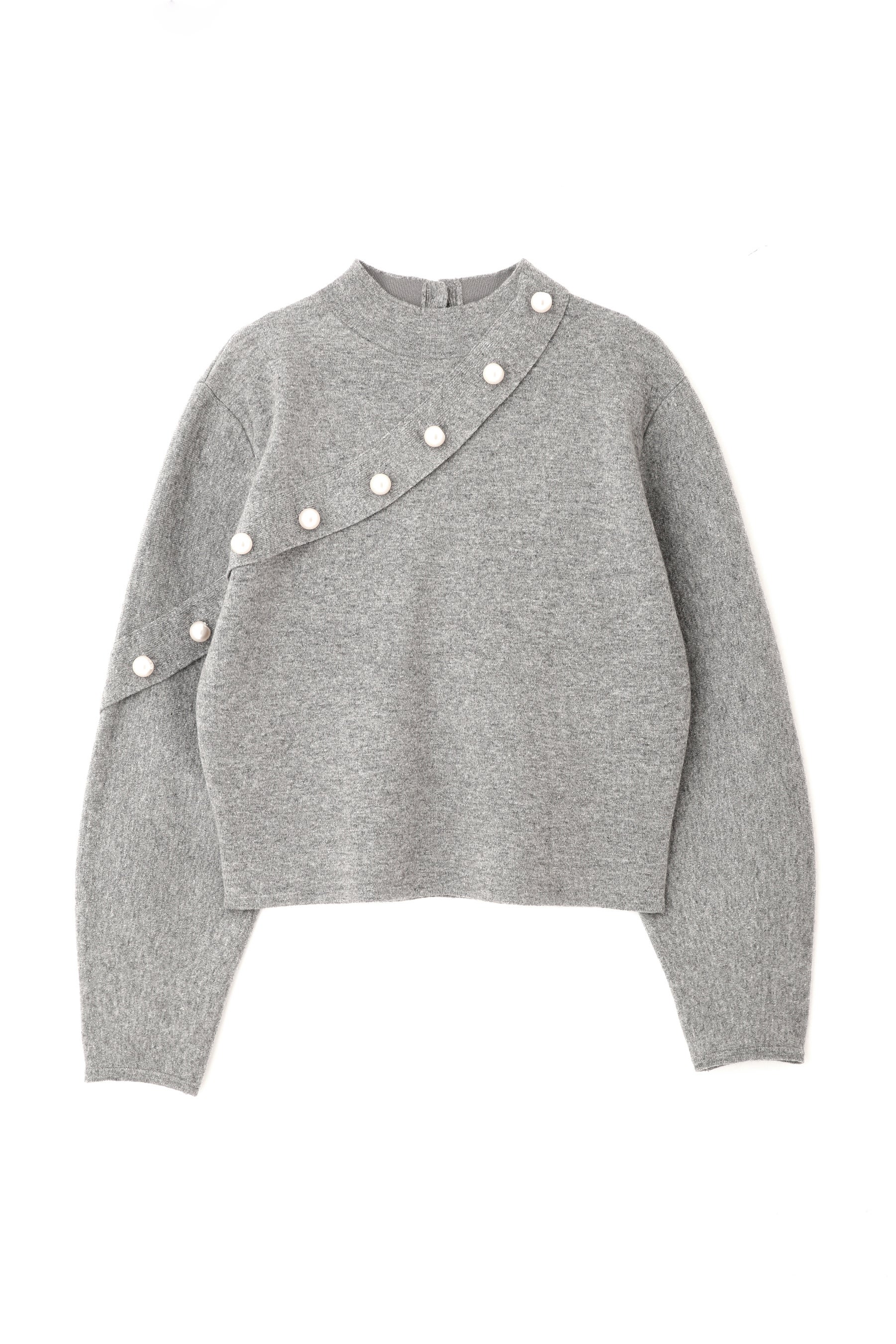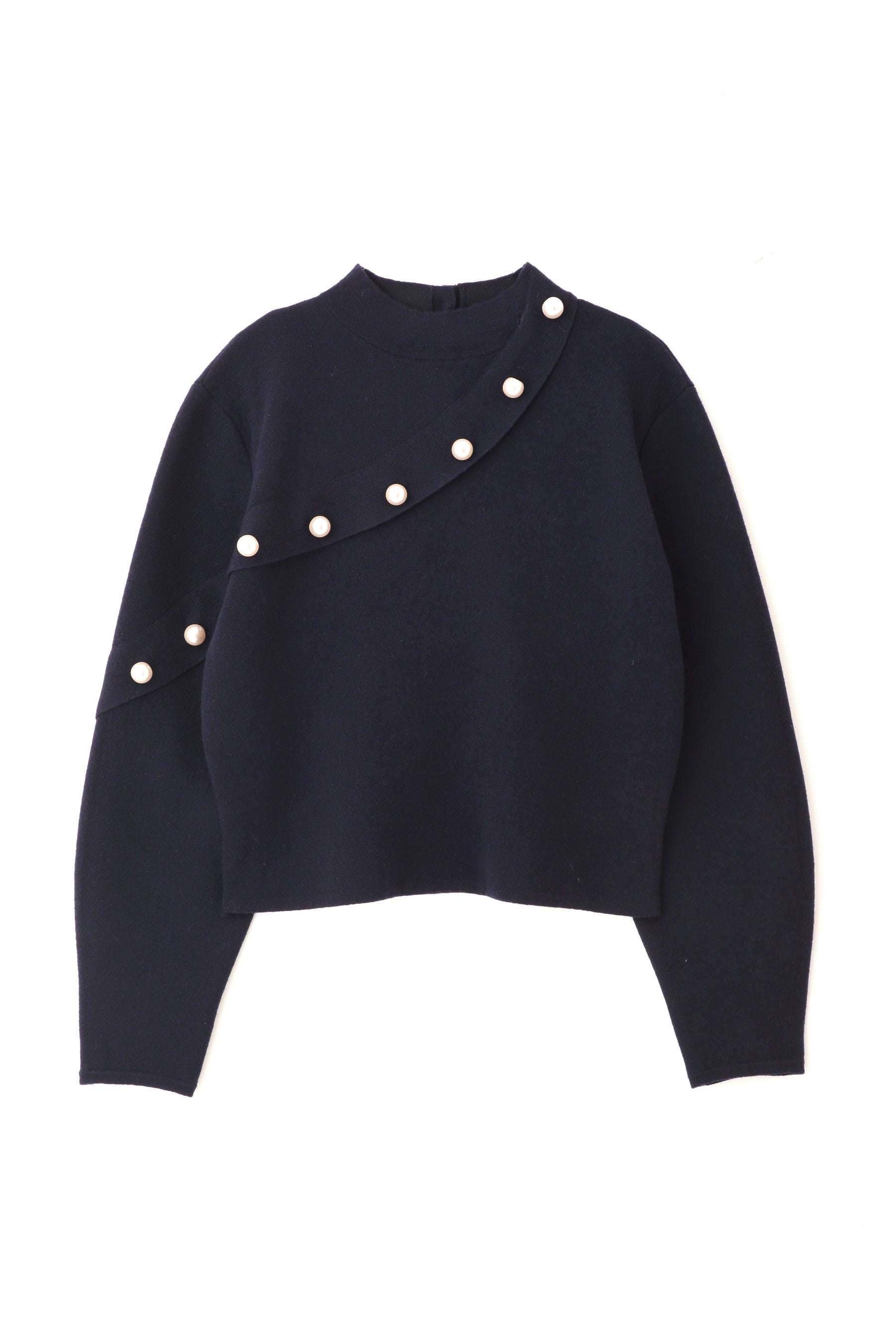 パールビーズがデザインされた、エレガンスで唯一無二のパールニットプルオーバー。