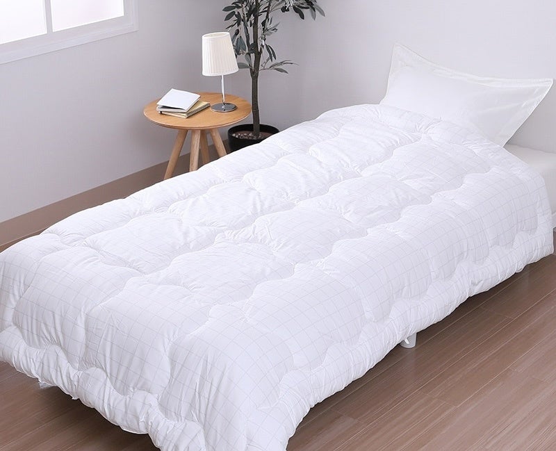詰めものに温度調節素材を使用し、オールシーズン快適な眠りへ導く合繊掛けふとん。寒い時は暖かく、暑い時は涼しく、快適な温度にコントロールします。洗濯機で丸洗い可能(洗濯ネット使用)で、清潔にご使用いただけます。