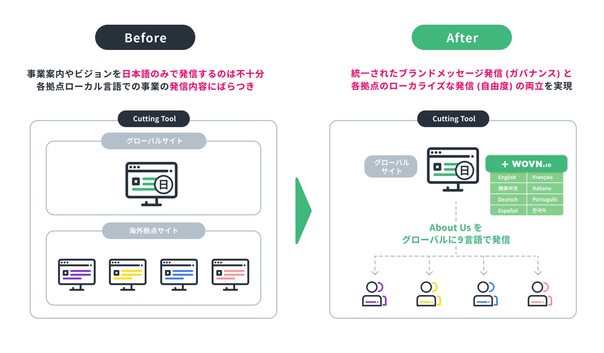 ■Web ガバナンス強化と各国拠点における自由度のある情報発信を両立できる WOVN.io を導入