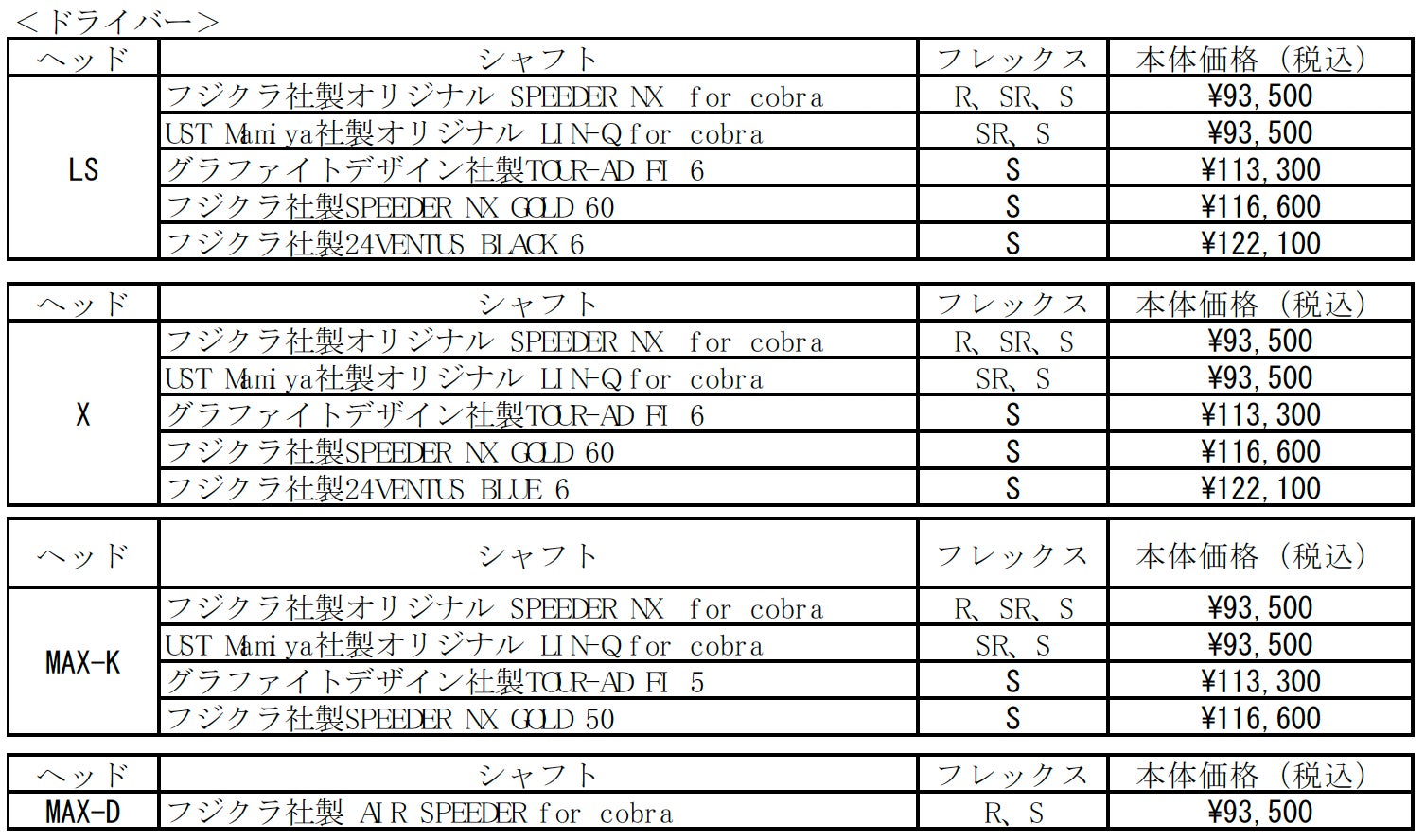 今回登場するドライバーは、ツアーのフィードバックから誕生したスピード・操作性・正確性に特化したLSモデル、LSのスピード特性と高い寛容性を高レベルで融合させたXモデル、10Kを超える高慣性モーメントで直進性が高くミスヒットに強いMAX-Kモデル、高弾道ドローバイアスでスライスを軽減するMAX-Dモデルの4タイプを揃えています。