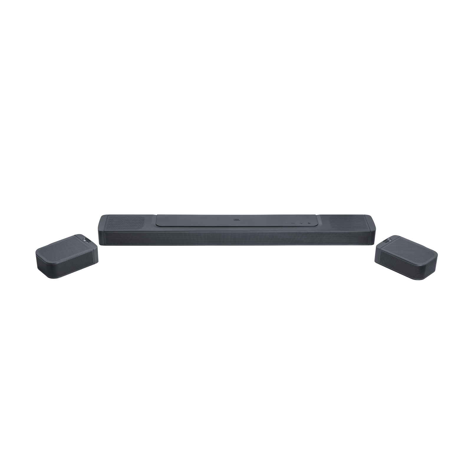 本製品は、世界中の映画館で使用され文字通り映画館のサウンドを知り尽くしたJBLが手掛けるサウンドバーのハイグレードモデルです。最新の立体音響サラウンドフォーマット「Dolby Atmos®」や「DTS:X」に完全対応する「7.1.4ch」のサラウンドシステムで、フロントに設置するサウンドバーに加えてワイヤレス・サブウーファー、そして、「BAR 1000」の最大の特長である充電式ワイヤレス・サラウンドスピーカーで構成されています。
