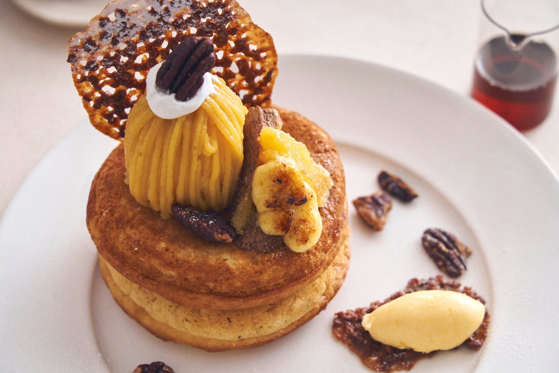 ◆ 絡み合う甘さとほろ苦さ!ほっくり濃厚お芋モンブラン×とろっとクリーミーな焼き芋ブリュレの絶妙バランスを楽しむ、五島産有機安納芋“蜜芋”パンケーキ