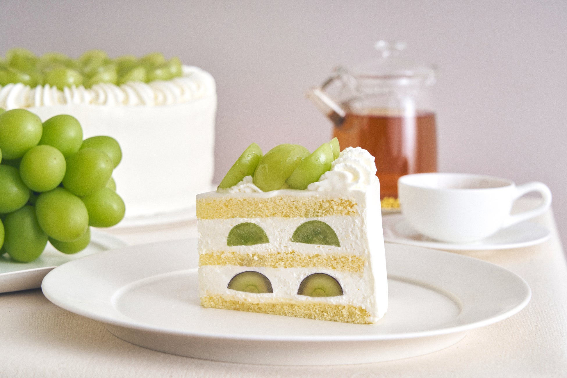 ぶわっと広がるフルーティーな甘さとさわやかな香り! 樹の上でしっかり完熟させてから届く、こだわりのシャインマスカット。なかにはシャインマスカットだけでなく、ジューシーな巨峰もたっぷり。旬のおいしさを引き立てる軽やかな生クリームで仕上げた、フルーツが主役のショートケーキです。