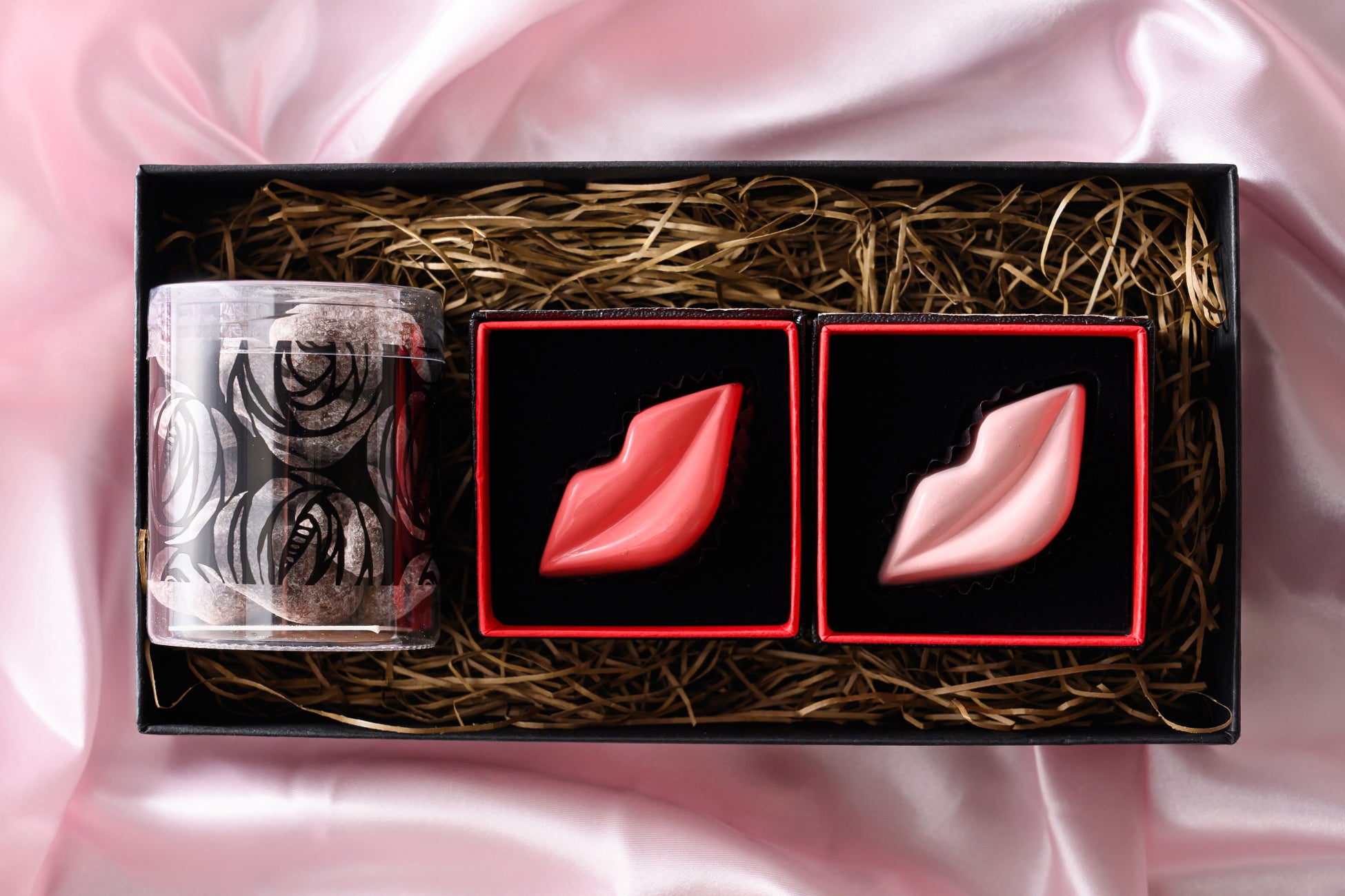 2色の限定ラブキスを2個ずつ、計4個詰め合わせた贅沢なセット。パステルピンクとコーラルピンクが織りなす美しいグラデーションは、まるで箱を開けた瞬間に現れる宝石のような華やかさを放ちます。