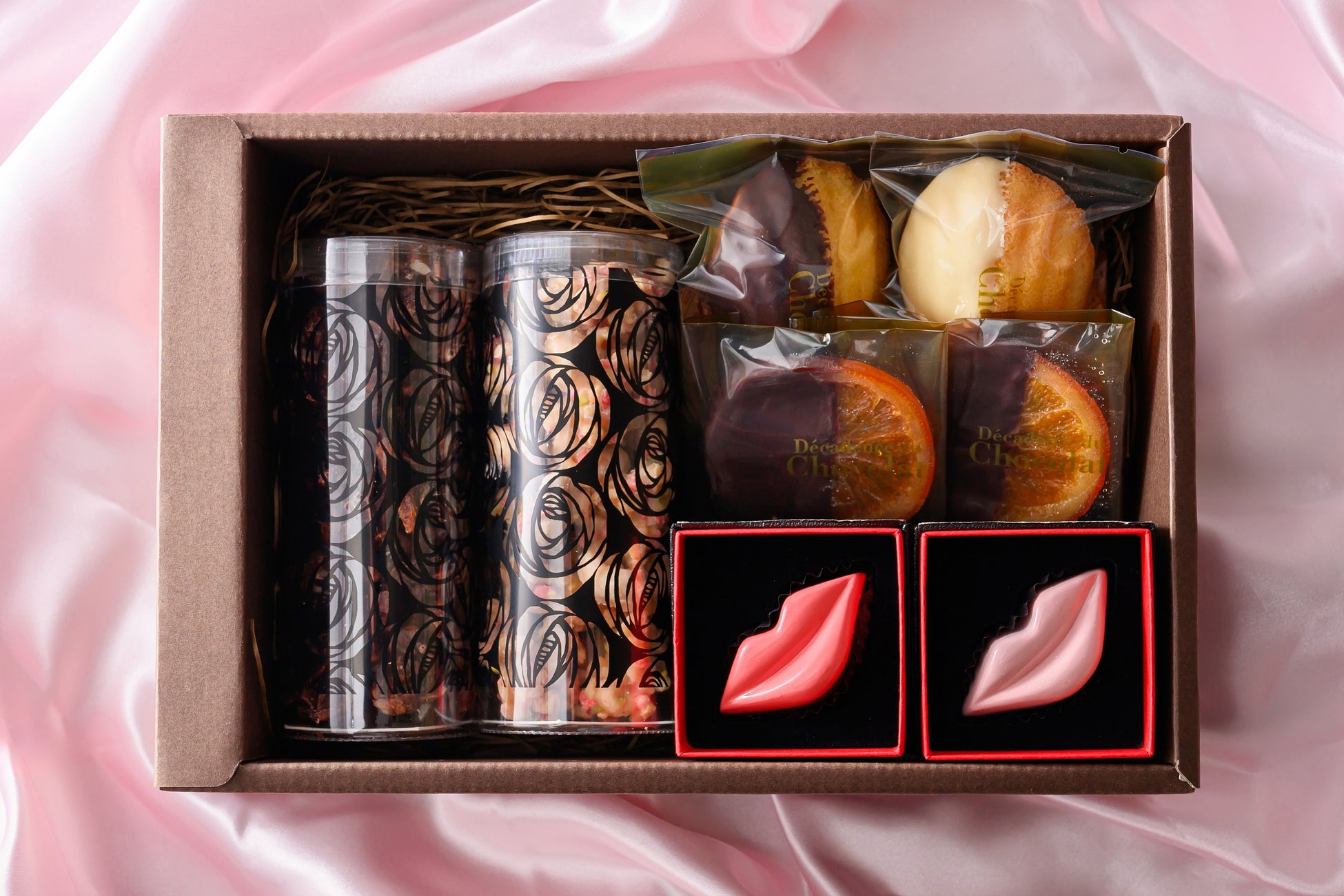 限定カラーのラブキスに加え、看板商品の「バレンシア」やマドレーヌ、ロッシェなど、デカダンス ドュ ショコラの魅力を凝縮した至高のアソート。大切な方への贈り物や、ご自宅での贅沢なティータイムを彩るフルコレクションです。