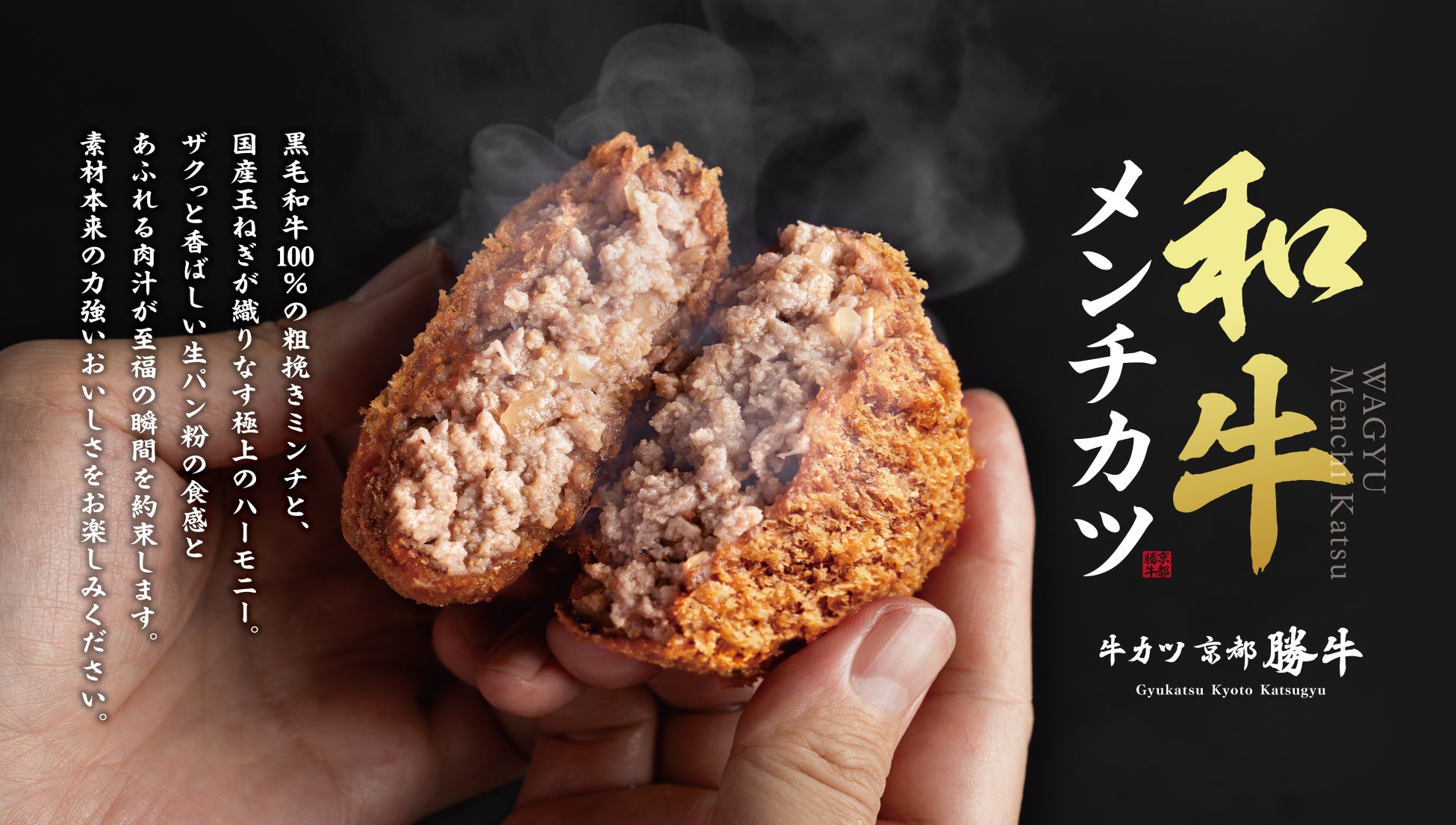 京都勝牛の人気メニューであるメンチカツが「黒毛和牛100%」になって新登場!