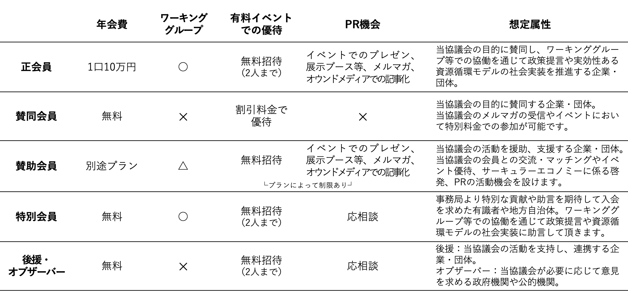 1.政策提⾔:協議会会員間の議論や、社会実装・実証事業を通じて、国際競争⼒あるサーキュラーエコノミーの確⽴に向けて必要な施策や法整備を広く提言していきます。