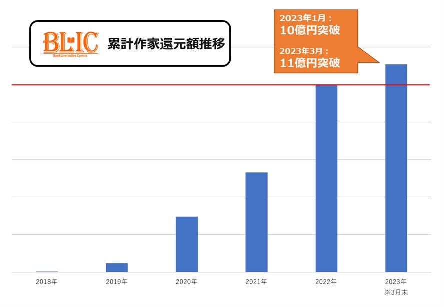 凸版印刷株式会社のグループ会社である、株式会社BookLive(本社:東京都港区・代表取締役社長:淡野 正・以下:当社)は、創作系個人誌を専門として当社が事業展開する「ブリック出版」にて、配信した電子書籍による累計作家還元額がサービス開始より5年3ヶ月(2023年3月報告分)で11億円を突破したことをお知らせいたします。