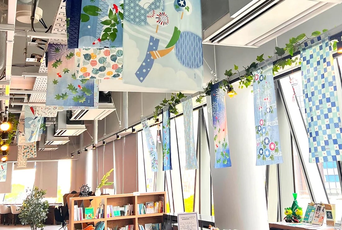 内容:絵手ぬぐいなどを使用した夏の「涼」を感じる店舗内空間装飾