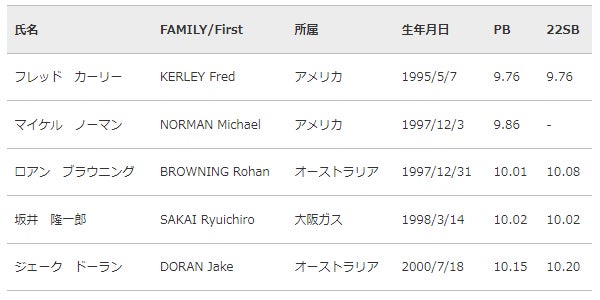 ~世界王者カーリー、ノーマン参戦!100m日本歴代7位(10秒02)の坂井、4x400mリレーアジア記録/日本記録メンバーの佐藤・川端が世界の強豪に挑む!~
