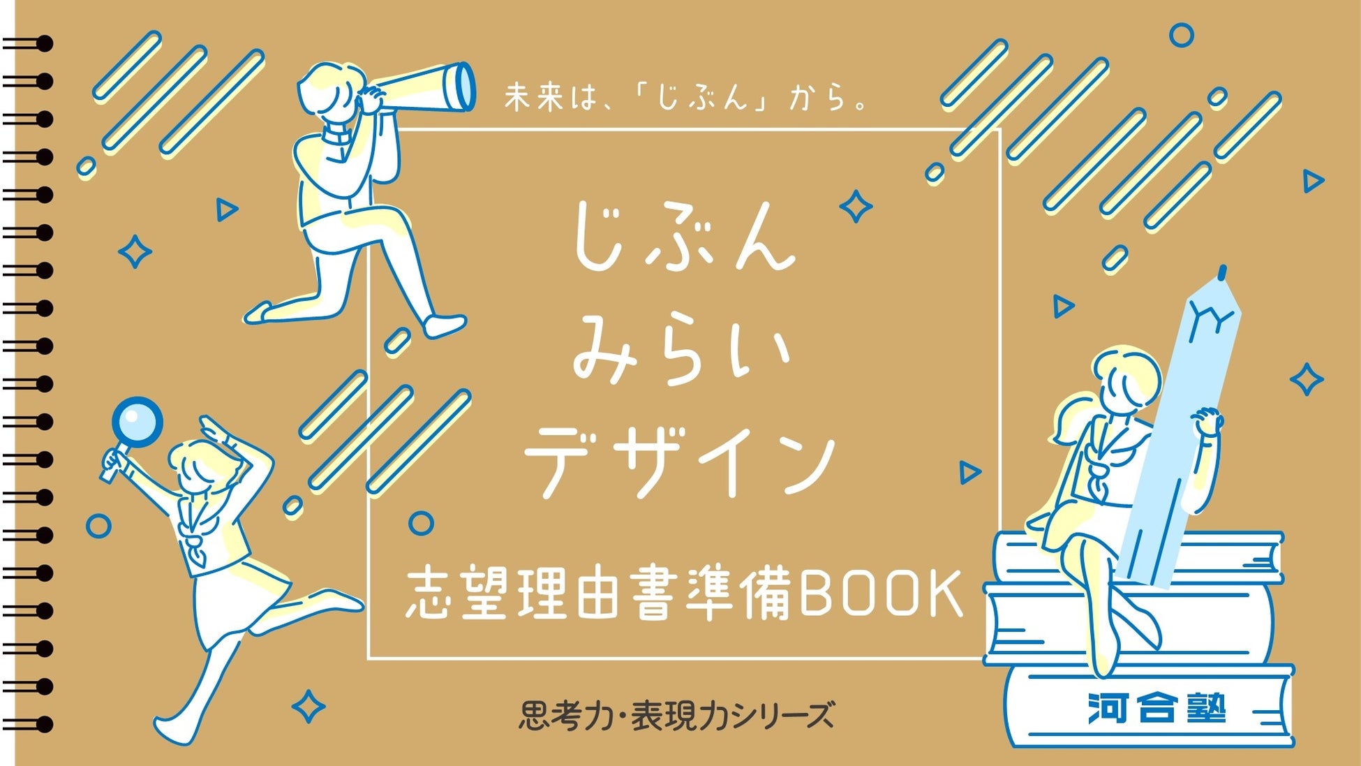 学校法人河合塾は、高校向け教材「思考力・表現力ワーク」をこの4月にリニューアルしました。年内入試、とりわけ総合型選抜で必須とされる「志望理由書」にフォーカスした『じぶんみらいデザイン 志望理由書準備BOOK』を付録として追加。年内入試志望者の増加を受け、学校現場での指導を支援します。