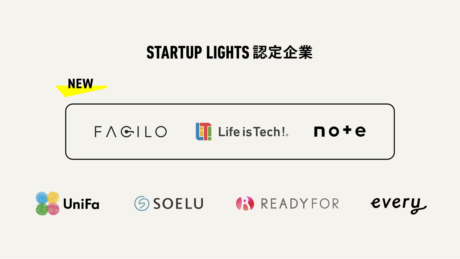 2022年8月にユニファ株式会社/SOELU株式会社/READYFOR株式会社/株式会社エブリーの4社を認定企業として発表いたしました。そして今回、新たに株式会社Facilo/ライフイズテック株式会社/note株式会社に認定企業として参画いただきます。