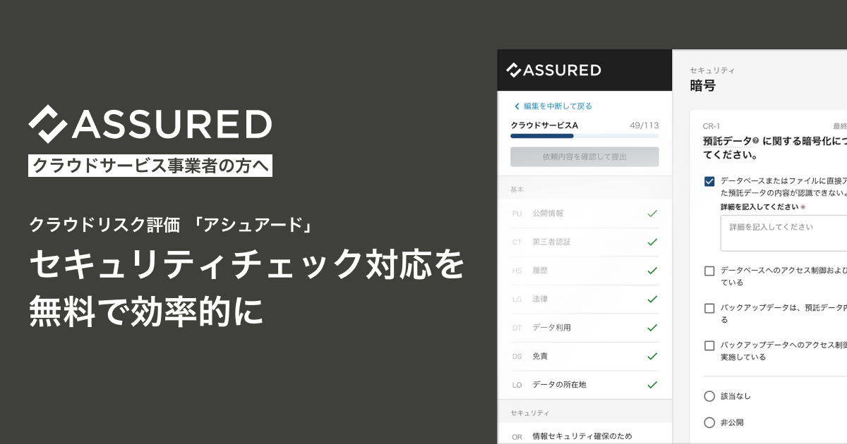クラウドリスク評価「Assured(アシュアード)」、クラウドサービス事業者のセキュリティチェック対応を効率化するサービス(無料)を開始