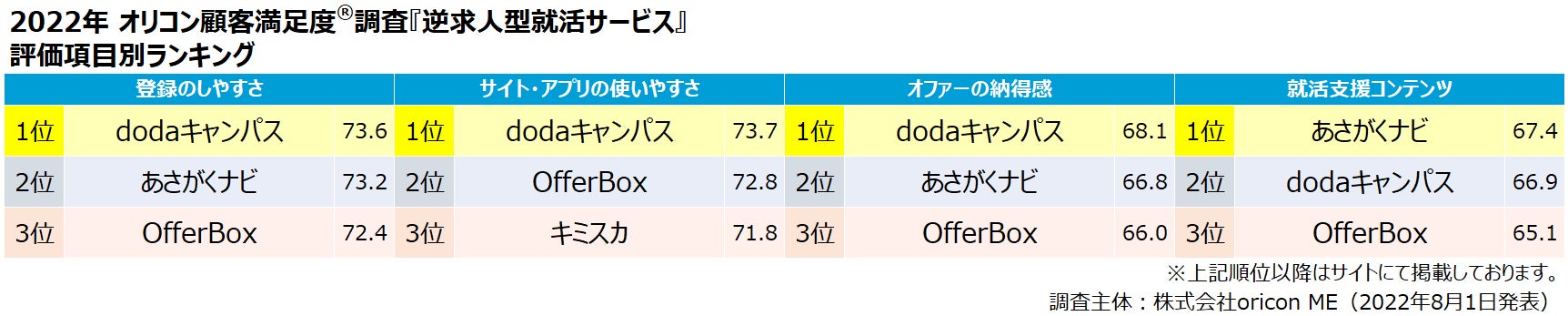 - 『逆求人型就活サービス』【dodaキャンパス】が2年連続総合1位に とくに「サイト・アプリの使いやすさ」で高評価