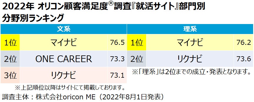 ・【ONE CAREER】は「文系」部門で2位を獲得 調査開始以来、初のTOP3入り