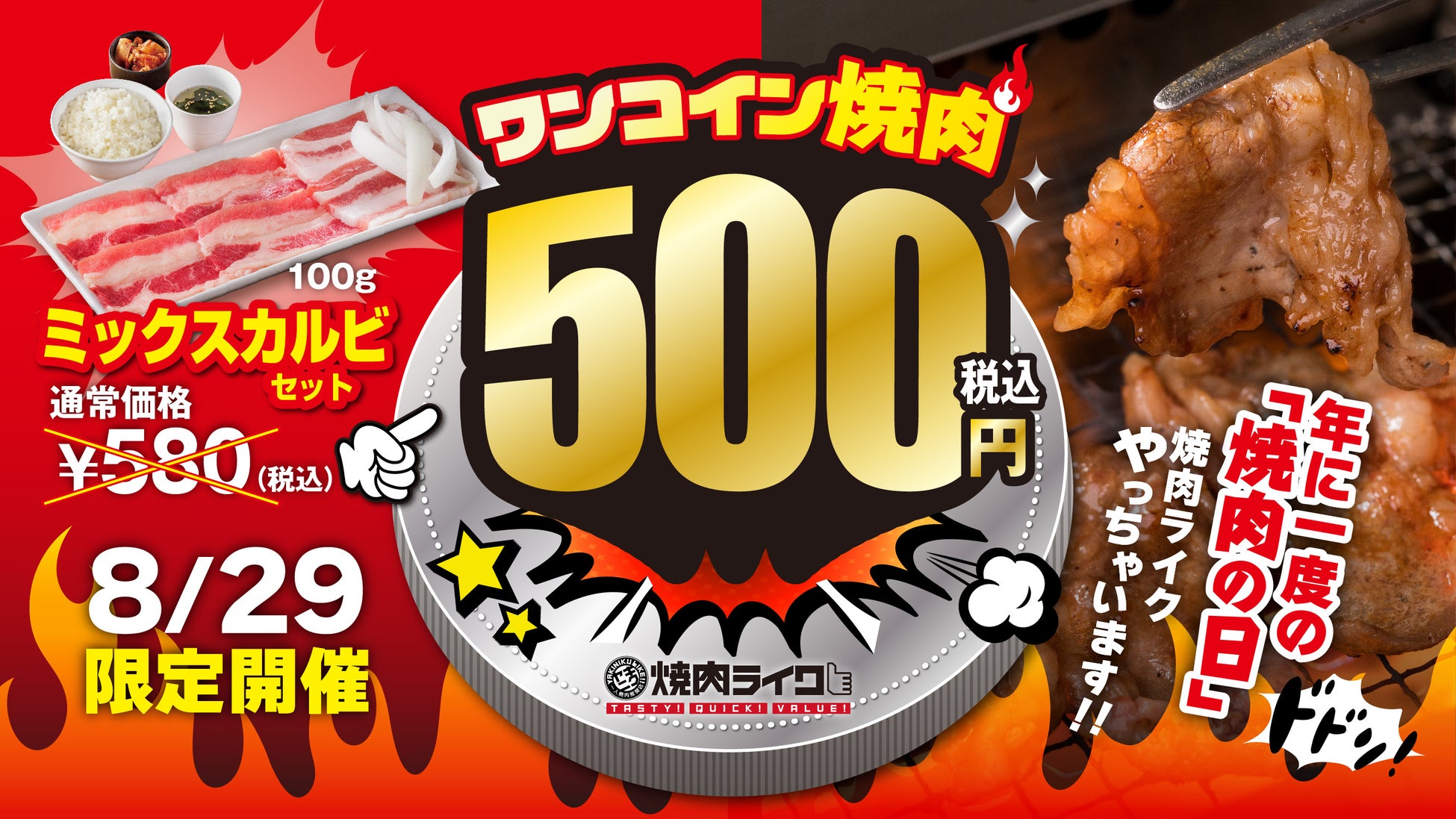 【焼肉ライク5周年&焼肉の日】ミニ焼肉セットがワンコイン!朝から夜まで気軽に焼肉を楽しもう! さらに黒毛和牛が半額でダブルでお得!8月29日全店舗にて開催