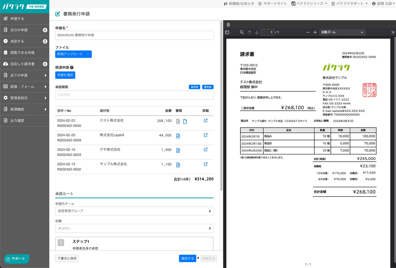 書類の作成から申請・承認までの流れの詳細は以下のリンクよりご体験いただけます(登録不要・無料)