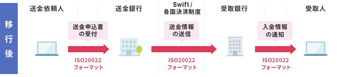 これにより、外貨送金のご依頼から、銀行間決済、ご入金のお知らせに至るまで、共通フォーマットによる情報伝達が可能となります。