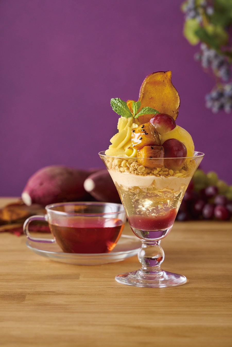 ⑥アフタヌーンティー・ティールーム 「さつまいもと葡萄のパフェ(紅茶付き)」 ¥1,680 ※9月5日 (木)~