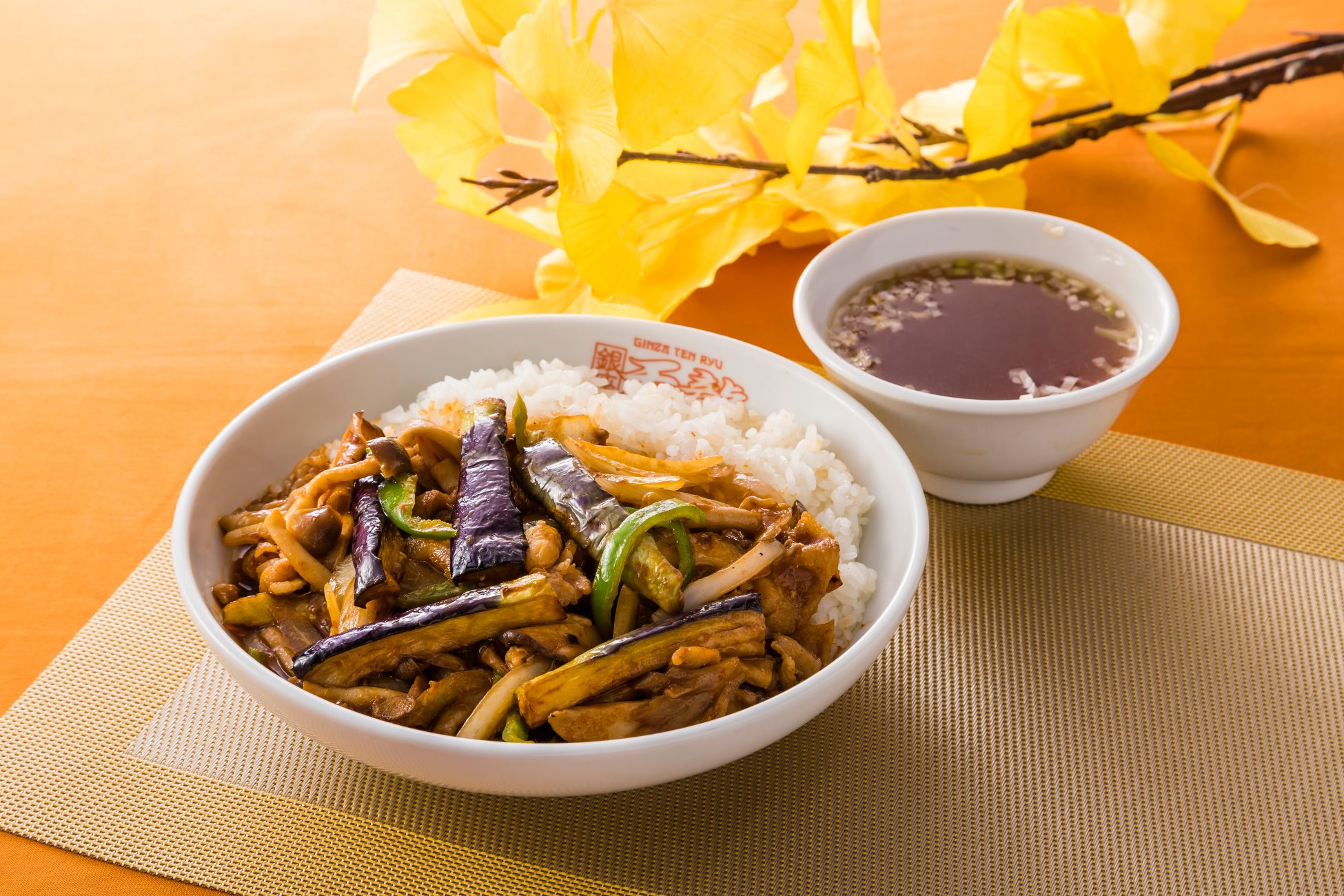 ①銀座天龍 「ナスとキノコのスタミナ丼(辛みそ)」 ¥1,390 ソラマチ限定