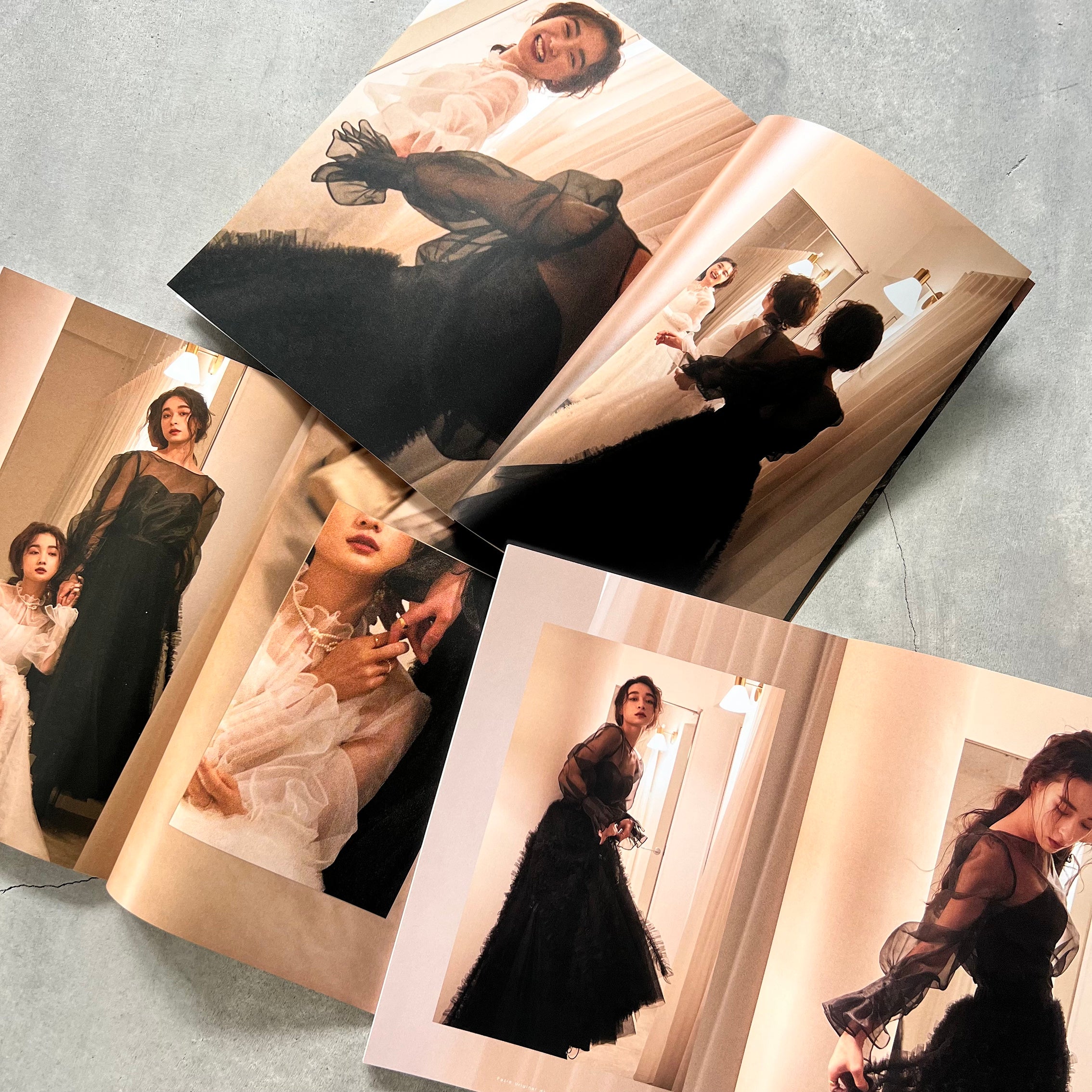 実際に着用できるドレスや専属ヘアメイクスタッフのメイク技術、背景やライティング、そして、デザインに頼らず写真を生かすレイアウトに至るまで、大切な節目の姿を残していただくためのaimのこだわりが見える1冊です。
